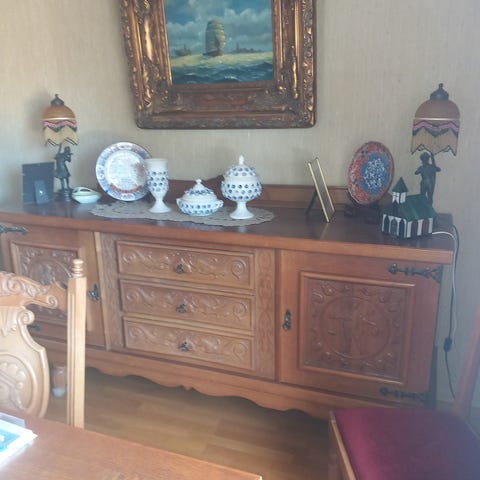 A stunning 6-person dining table made of real solid wood with the same natural grain and warm finish as my other furniture pieces (armchairs & coffee table).