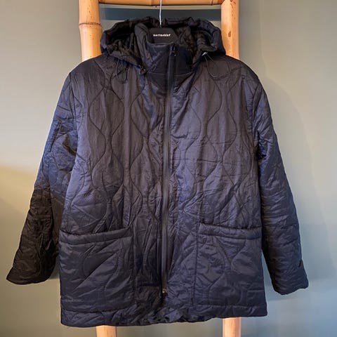 Ihana ja uudenveroinen R-collection tikkitakki. Täältä ostettu mutta itselleni liian iso. Koko M mutta reilu (ehkä parempi L kokoiselle?). Kietaisumalli, jonka saa kiinni nauhalla ja nepparilla (takin sisällä) sekä vyöllä. Vetoketjulliset taskut.