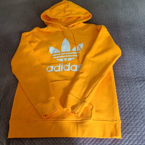 Adidas naisten huppari, koko S, väriltään keltainen. Hupparissa on vetoketjuton malli ja käytännöllinen etutasku. Soveltuu vapaa-ajan käyttöön.