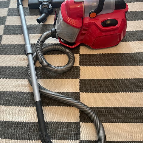 Hyvä pölynimuri, joka on varustettu erilaisilla suulakkeilla ja letkulla, jotka sopivat monipuoliseen siivoukseen. Väri musta ja hopea.