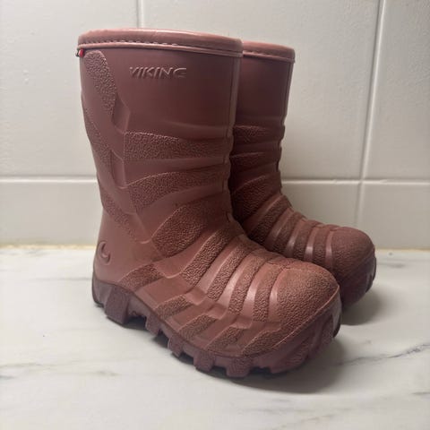 Viking lasten talvikumisaappaat kokoa 24 tytöille. Saappaat ovat valmistettu vedenpitävästä materiaalista ja sopivat käytettäväksi märissä, kosteissa ja kylmissä olosuhteissa. Saappaiden sisällä lämmin vuori. Väri on violetti.