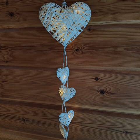 Revontuli sydän 3D, 16-led, lämmin sävy. Sisäkäyttöön.Vanhempaa mallia (muuntajassa 8/2016). Mutta hyväkuntoinen. Laatikko saanut osumaa.