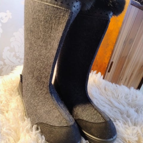 Kuoman klassiset huopikkaat, koko 36. Muuten oikein siistit mutta kuvissa näkyvät jäljet kummankin saappaan reunassa. Suutarilta kysytty ja voivat korjata, eli saa vielä pienellä vaivalla mahtavat saappaat talveen.