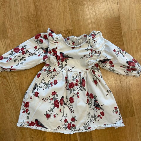 Kaunis punainen neulemekko Newbieltä koossa 74cm. Koko mielestäni hieman nafti, joten menee 68-74cm koossa. Ehjä ja tahraton. Pientä pesuhaitua pinnassa, mikä tyypillistä pesun jälkeen.
