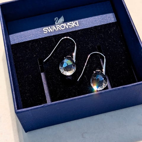 Swarovski naisten koru, valmistettu kristallista ja kullatusta materiaalista. Korun muotoilu muistuttaa kukkaa, jossa on kirkas kristalliosa ja kullanväriset lehdet.