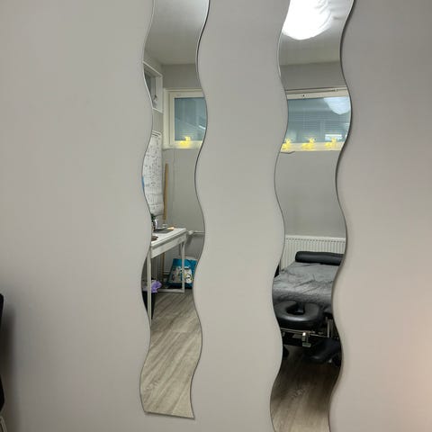 IKEA aalto-peili, jossa aaltoileva muotoilu. Peilin materiaali on lasi, ja se on suunniteltu seinälle ripustettavaksi. Sopii sisustuselementiksi erilaisiin tiloihin.