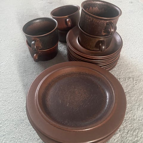 Arabia Ruska teekupit ja lautaset, 6 kpl molempia.