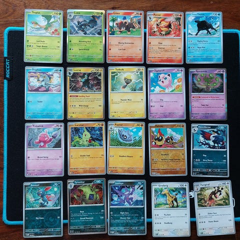 Myydään Paldea Evolved Pokemon kortteja 20kpl. Hinta yhteensä 8,60e tai yksittäin ostettuna hinnat alla.