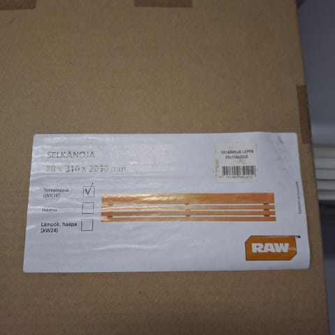 laude-elementti Lämpöhaapaa, avaamaton paketti (sisältää seinäkiinikkeet asennusruuvit sekä asennus ohjeet) jäi ylimääräiseksi omasta projektista. Säilytetty sisällä lämpimässä.