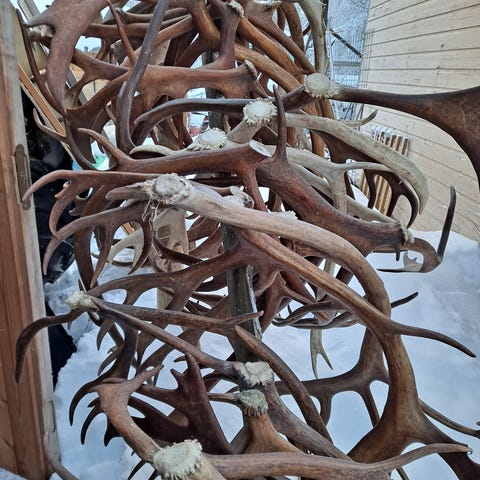 Sarvet, mitat kuvissa. Ovat n 1970 luvulta. Kallossa karvaa ja reiät. Voin lähettää. Ei hiiren puremia.