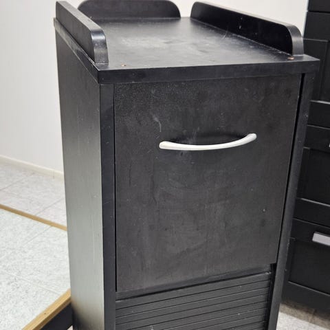 Mustat ja harmaat säilytyslaatikot, joissa neljä vetolaatikkoa.