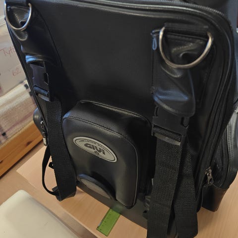 Musta muovinen perälaukku moottoripyörään, merkki MotoDetail.