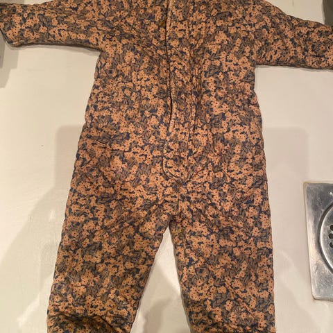 Käyttämätön, mutta käyttöön valmiiksi hajusteettomalla pesty. Vauvan Konges Sløjd topattu sisähaalari neppareilla. Vaalea, hupullinen kokopuku.