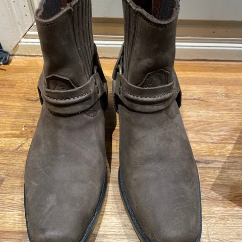 Puhvelinnahkaiset italialaiset ASH -merkkiset biker bootsit, joissa on varressa mattapintaisia kuvioniittejä ja 2 solkea. Pyöreä kärki. Pohja on kumia. Uudenveroiset. Koko on reilu 36 ; pohjan ulkomitta on 26 cm Kengät on tehty Meksikossa.