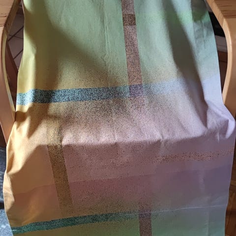 Tehty pitkä liina. Kaitaliina. Suhteellisen siisti, jokunen pieni tahra. Tästä voi ommella vaikka mitä. Koko 128x59