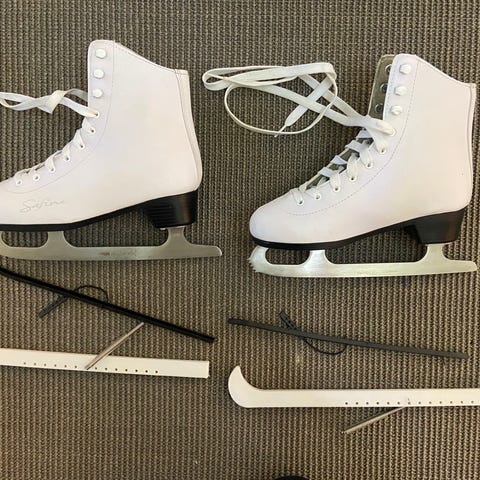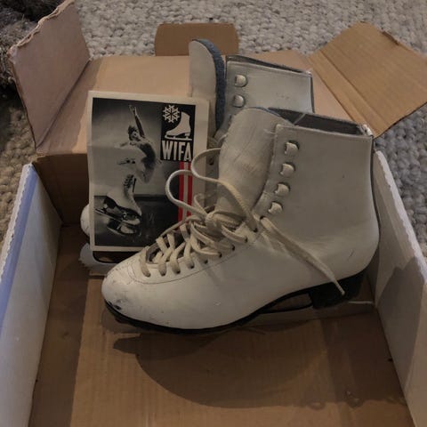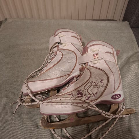 Käytetyt Fila luistimet. Irrotettavan pohjallisen koko mitta 25cm. Ostettu meille täältä, mutta koska näistä on kärkiterät poistettu, eivät sovi meidän käyttöön.