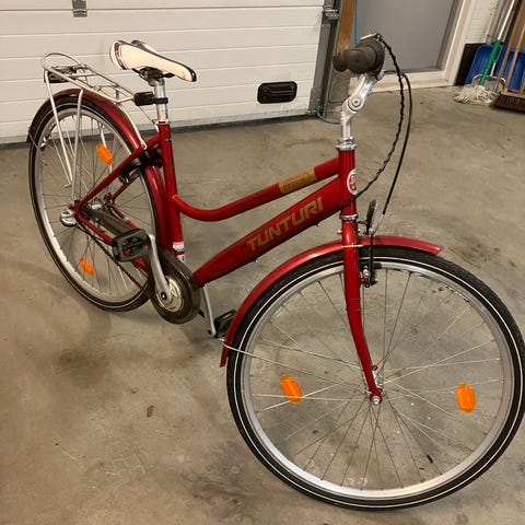 Hyväkuntoinen Tunturi Prego 28”. 3-vaihdetta. Pientä käytönjälkeä. Runkolukko kahdella avaimella.