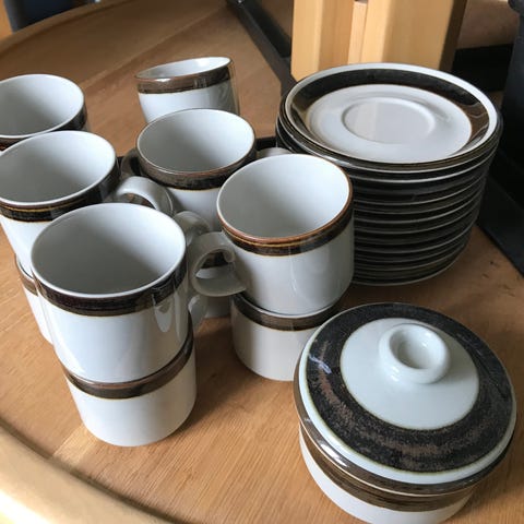 Arabia astiasto sisältää kahvikuppeja 11 kpl lautasia 16, kermakon ja sokerikon. Astiaston pinnassa on kukkakuviointi. Materiaali on posliinia. Vanhoja erillaisilla leimoilla. Olleet aikaisemmin päivittäisessä käytössä, viimeiset 12 v kaapissa keräämässä pölyä. Kaikki yhteensä 70 euroa/tarjous. Nouto tai toridiili.