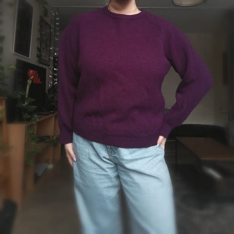 Oranssinsävyinen jotain villasekoitetta, käsinneulottu. Siistit, pestyt, tuuletetut.