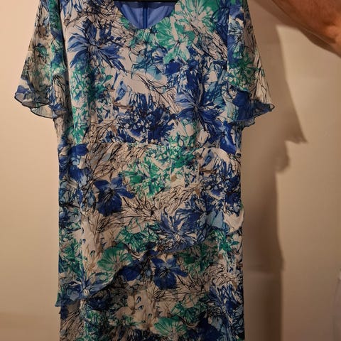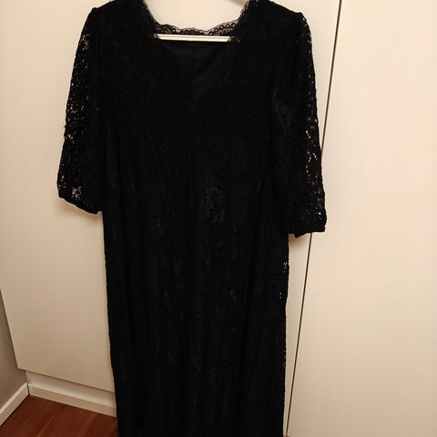 Juhlava musta, jonkin verran läpinäkyvä mekko / tunika / paitamekko kokoa 42. Edessä kaunis kirjailu ja paljetteja, helmassa rypytys. Toimii hyvin topin kanssa.