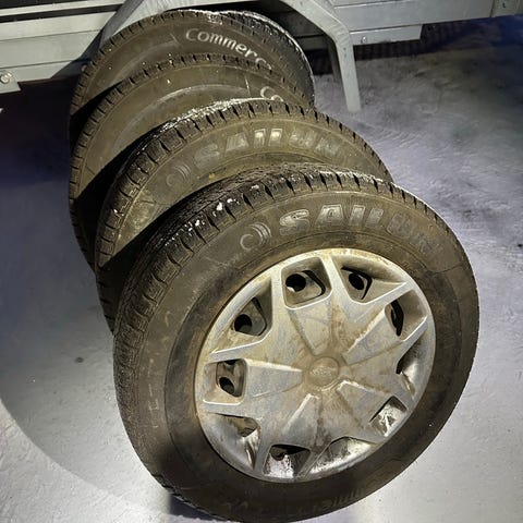 4 kpl sarja kesärenkaita Ford Transit Connectiin sopivilla peltivanteilla. Renkaista 3 kpl Yokohama BluEarth A, ja 1 kpl Bridgestone B390. Kaikki renkaat 195/65/15. Vanteen ET 50 ja jako 5 x 108