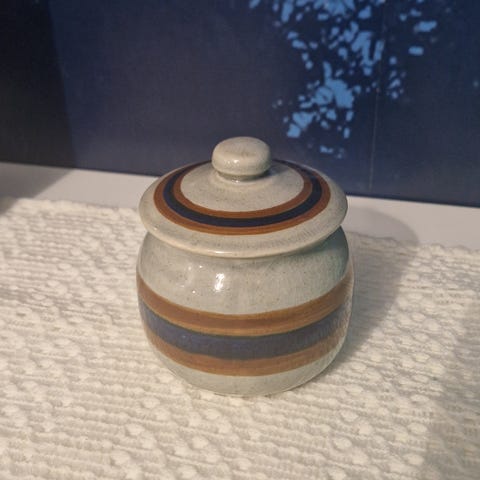Kaunis pyöreä lasiastia korkilla esim öljylle tai balsamicolle.