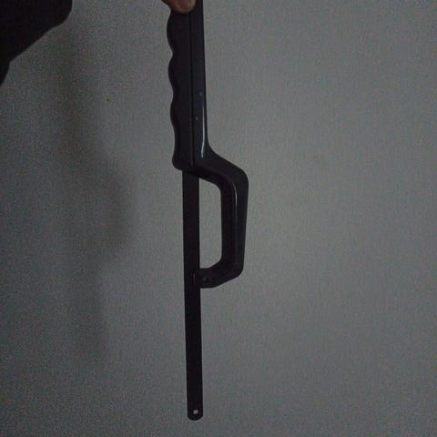 Terän pituus 31 cm. Kiinnitys siipiruuvilla. Toimiva.
