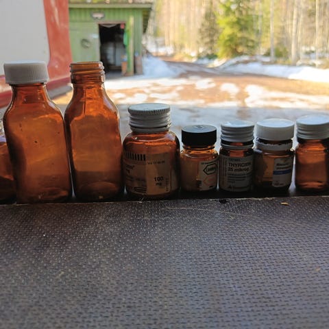 Kuvan wanhat lääke yms. pullot. Nouto tai toimitus lisämaksusta.