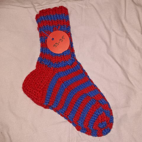 Myydään Novitan 7-veljestä langasta itse neulotut lämpöiset villasukat.
