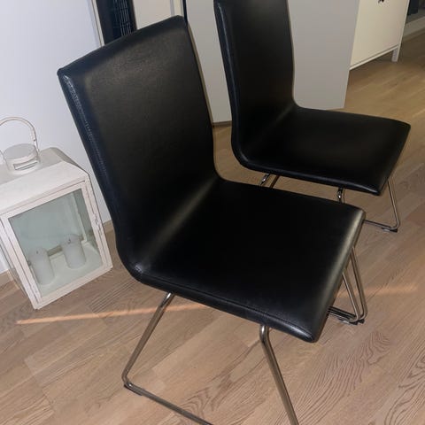 Kaksi keinonahkaista tuolia.