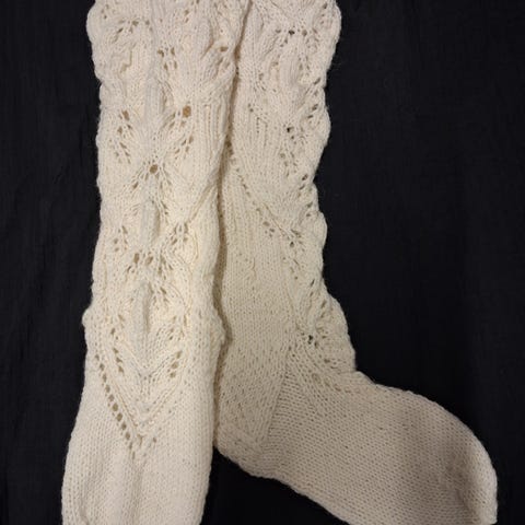 Tosi söpöt valkoiset pitsineule villasukat vihreillä nauhoilla. Koko 38-40.