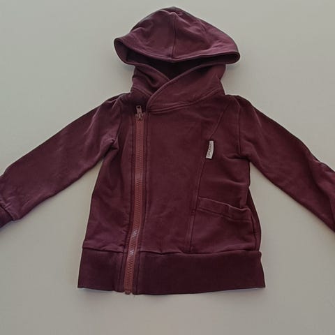 Viininpunainen Gugguun huppari, koko 92. Molemmissa hihoissa pienet tahrat, en ole koittanut sen ihmeemmin poistaa. Muutoin ehjä ja siisti.