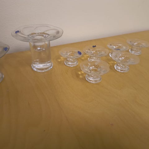 Lumme sarjan kynttilän jalkoja, yksi iso lasi ja kaksi pienempää. Koko satsi kerralla.