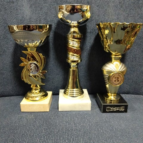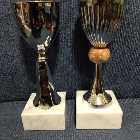 Myydään palkintopokaali, korkeus 13,5 cm. Laatta irrotettu.