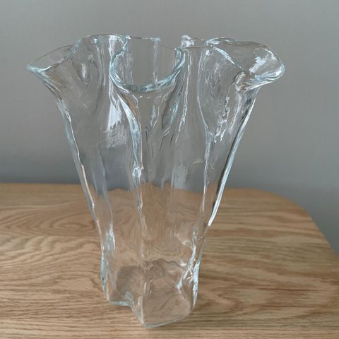 Iittala lasinen maljakko kirkas. Valmistettu läpinäkyvästä lasista. Merkistä ei varmuutta (tarra puuttuu).