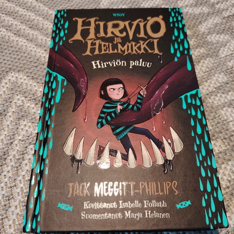 Rölli ja metsänhenki-kirja, uudenveroisessa kunnossa mutta sisäsivulle kirjoitettu päivämäärä.