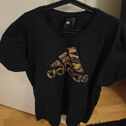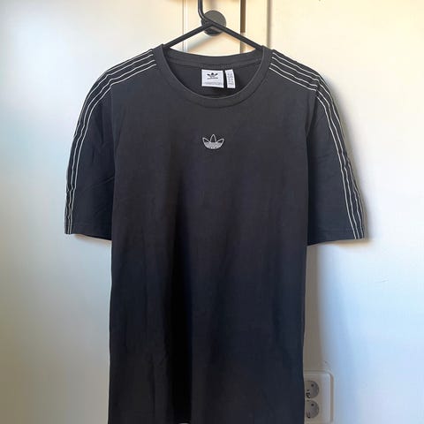 Klassinen musta Adidas t-paita jossa raidat hihoissa ja hauskana yksityiskohtana harmaat hihat. Koko XL, voin lähettää tarvittaessa