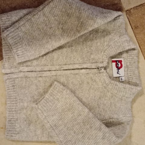 Pikkutakki on tummansininen ja merkiltään Sanetta. Materiaalina on joustava puuvilla, joka on mukava vauvalle. Takki ostettu meille uutena ja ollut vain kerran meillä käytössä.