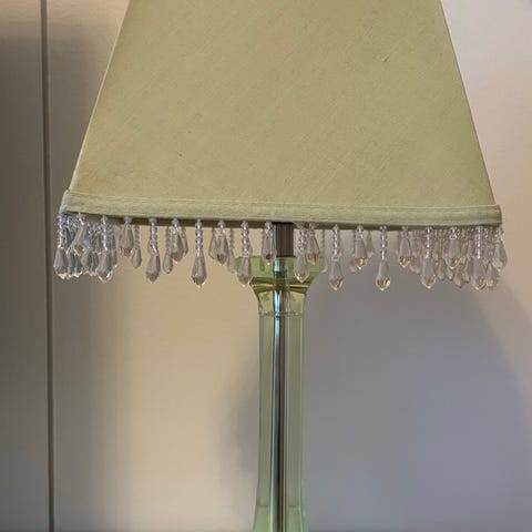 Pöytälamppu jonka korkeus on n. 45cm. Lampun jalka on uudenveroinen, kupu hyväkuntoinen.
