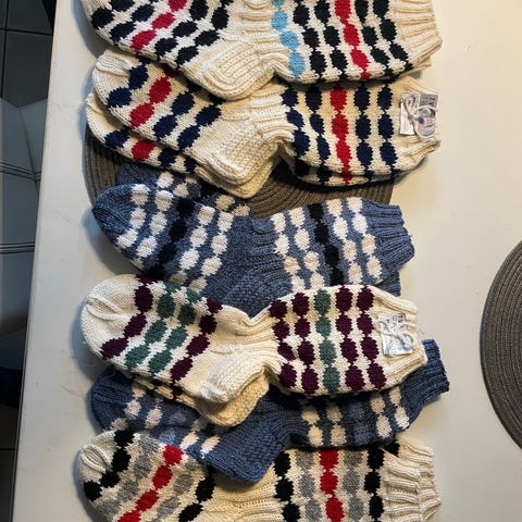 Ostin kauan sitten Tallinnan Mustamäen torilta nämä paksut leggingsit, jotka ovat kuitenkin jääneet käyttämättä. Neulemateriaali on 40% villaa, 30% polyesteriä ja 30% akryyliä. Koko L 48-50, pituus 105 cm, leveys lantion kohdalta 40 cm. Valmistusmaa Liettua. HIntapyyntö 25€+ pk