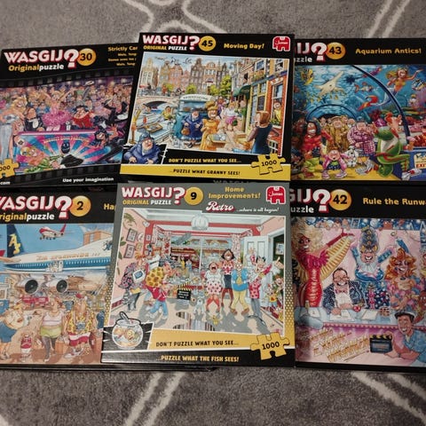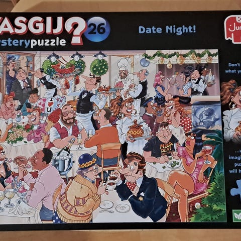 Kaksi palapeliä: kannen kuva -palapeli ja What the lady sees -palapeli.
