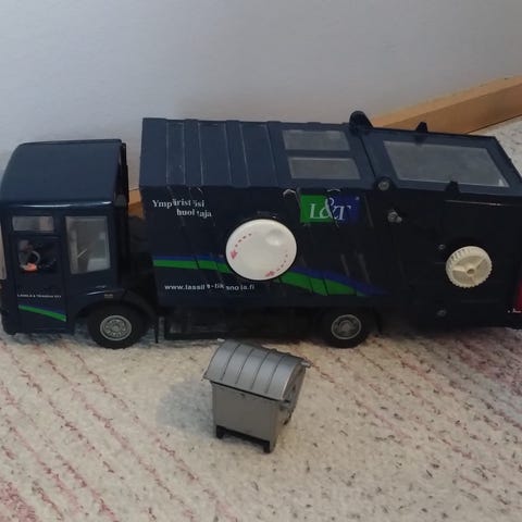 Toimiva lasten roska-auto 48cm pitkä.Ehjä