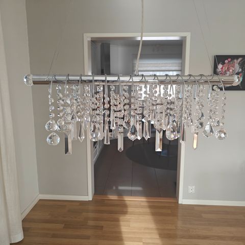 Hieman erilainen kristallivalaisin. Muodostaa kattoon kivan valokukan ja siinä omat ylisanat sitten on. Ei sovi omaan tyyliin, joten uutta kotia vailla. Nouto sopimuksen mukaan Riihimäeltä. Liian herkkis postin mukiloitavaksi. Kulkeutuu viiveellä myös Vantaalle. Voin tuoda erilliskorvauksella lähialueelle / motarin varrellle riksu-vantaa/Tikkurila. Kysy.