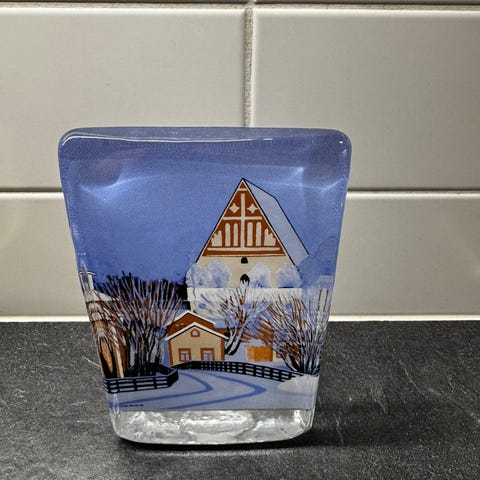 Myydään virheetön Juhani Palmun tuikkualusta. Koko noin 10x 17cm.