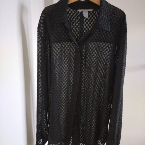 Myydään H&M musta, hieman läpikuultava paita. Taskut edessä rintamuksella sekä napit hihansuissa. Koko 34, kunto hyvä.