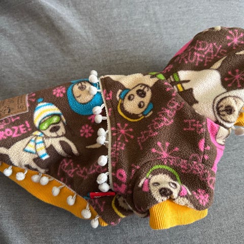 Myyntiin takki joka jäi omalle kasvavalle pennulle pieneksi. Sanoisin, että on perus jumppapomppaa vähän paksumpi.