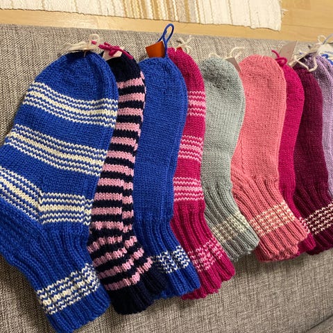 Käsin kudottu villalapaset, alafosslopi lanka ja Janne sekä seitsemän veljestä. Ohuempia ja paksumpia lapasia. Koko naisen/ nuoren