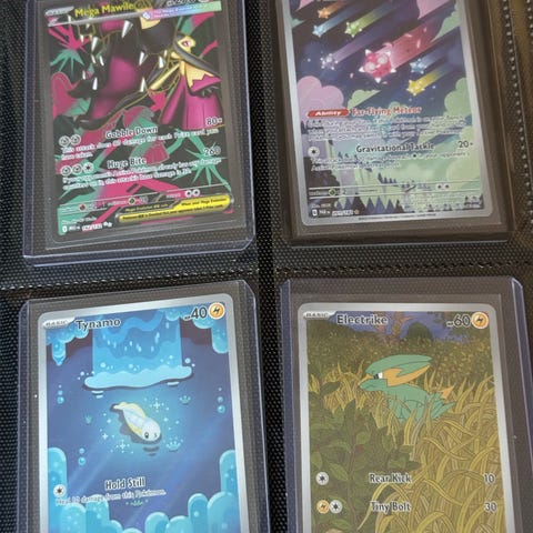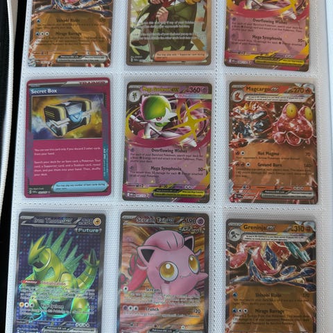 Kokoelma Pokémon-keräilykortteja eri hahmoilla ja erikoisversioilla. Kortit on säilytetty muovitaskuissa, jotka suojaavat niitä kulumiselta. Kaikki kortit 100% aitoja, erinomaisessa kunnossa, ja lähes kaikki itse avaamia. Saa tulla paikan päällekin näpräilemään.