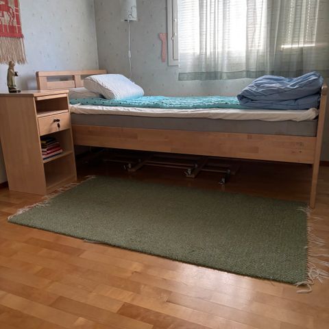 Moitteettomassa kunnossa oleva seniori sänky. Pääty nostettavissa. Täyspuuta. Uudenveroinen. Patja kuuluu mukaan. Mukaan tulee irrotettava pöytä.