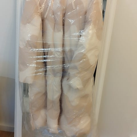 Naisten talvitakki, joka jäänyt vähälle käytölle. Ei haise, on puhdas, meillä ei ole eläimiä kotona. Vyötäröllä on kiristysnauha sisäpuolella. Edessä napit ja painonapit. Taskut. Tämä on ihanan pullea ja pehmeä joka kohdasta, untuvan tasaisesti ympäri takkia.